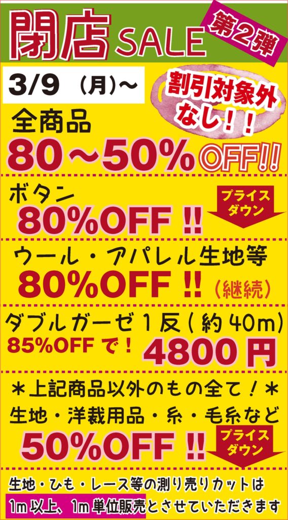 【3/9(月)~】閉店セール第2弾